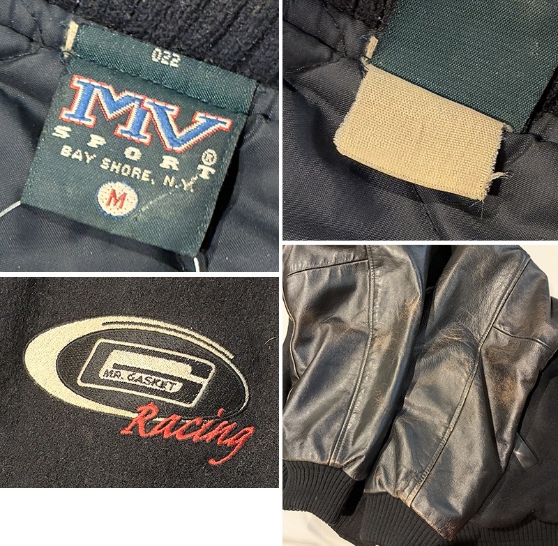 90’s USA製【MV SPORT】【ビンテージ】MR.GASKET RACING【メルトンxレザー】【黒】茶芯【スタジャン】【サイズM】