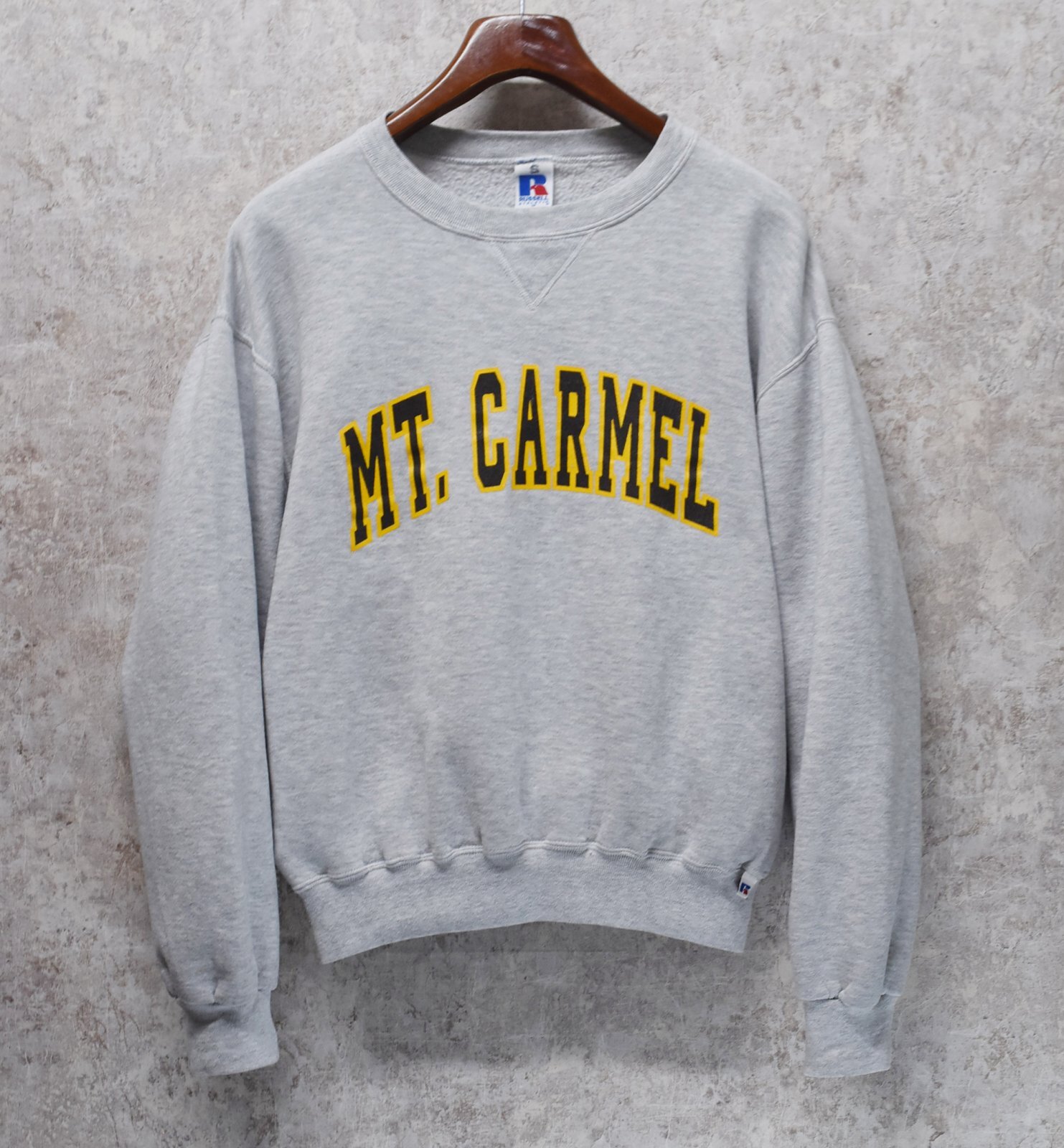 90's~【メキシコ製】【RUSSELL】ラッセル 【ビンテージ】【グレー】MT.CARMEL【カルメル山】前Vスウェット【サイズM】