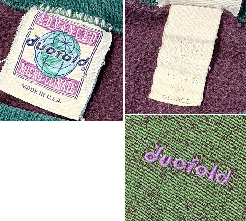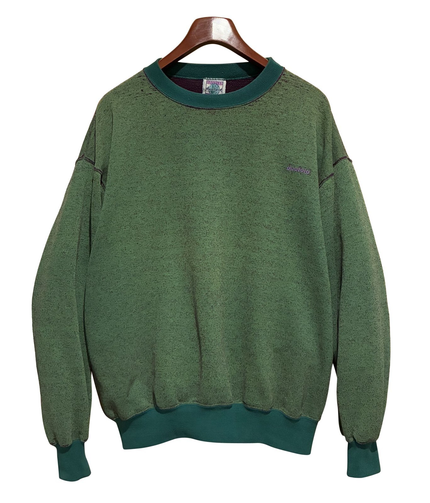 90's【USA製】【ビンテージ】【duofold】デュオフォールド【緑x紫】まだら模様【スウェット】【サイズXL】