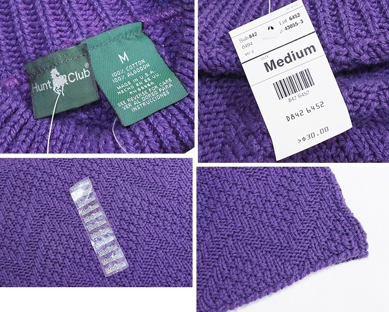 デッドストック【USA製】【ビンテージ】【Hunt Club】ハントクラブ【紫】【ハイネック】【コットンセーター】【サイズM】