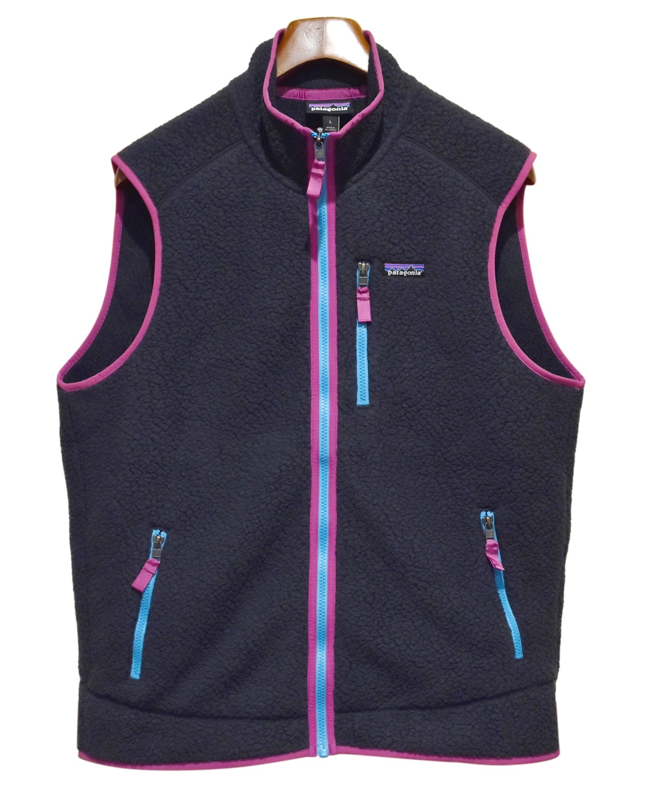 未使用品 ビンテージ【パタゴニア】【patagonia】チャコール×紫×水色【レトロパイルベスト】【フリースベスト】【サイズL】