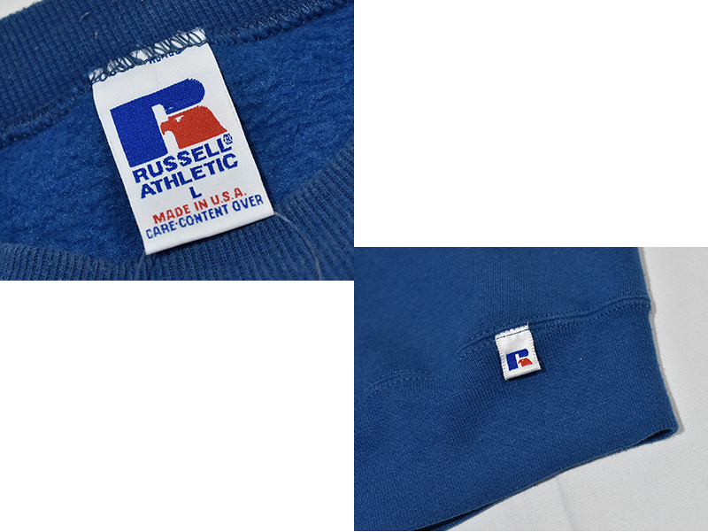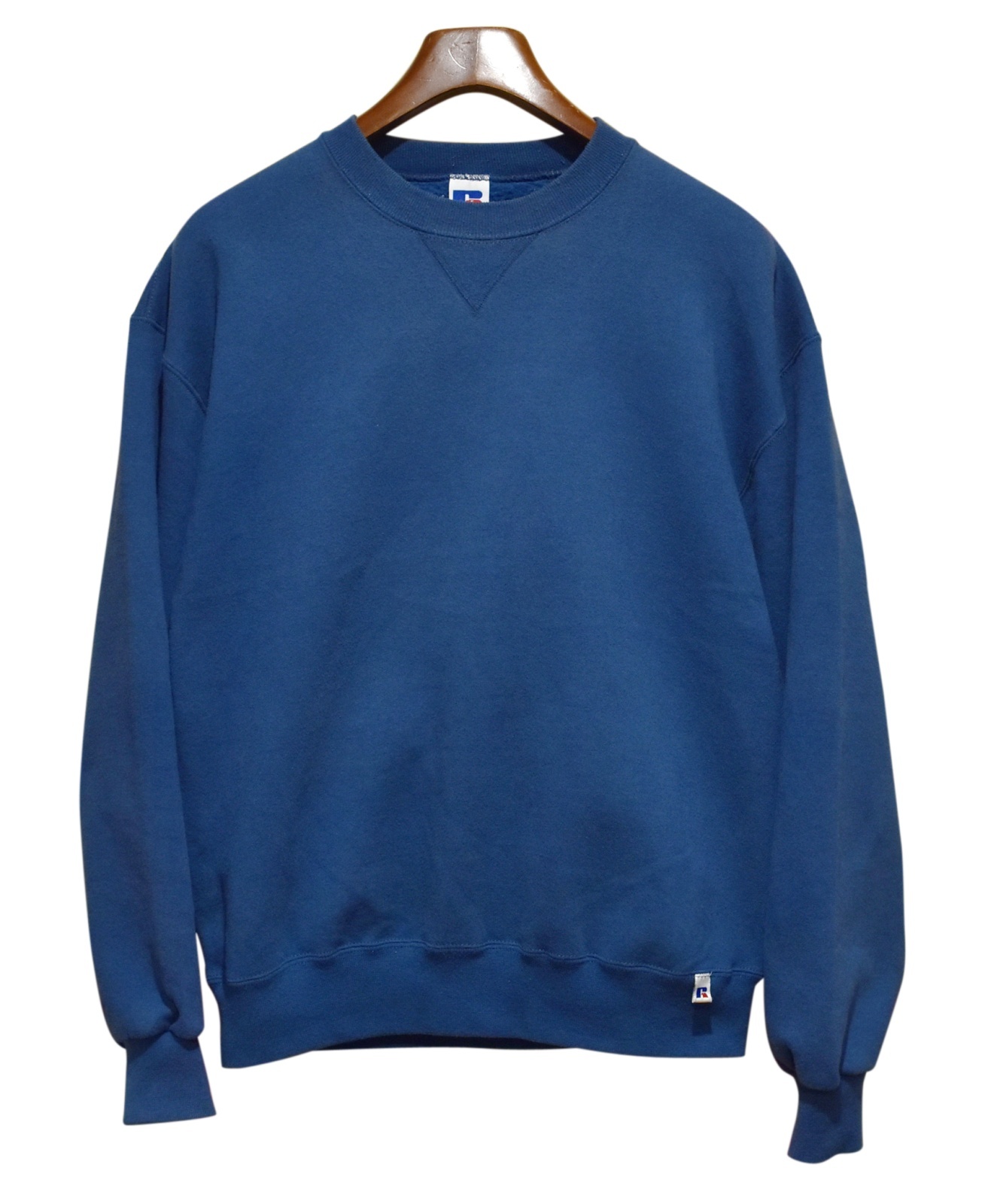 90's【USA製】【RUSSELL】ラッセル 【ビンテージ】青【無地】【クルーネック】前V スウェット【サイズL】