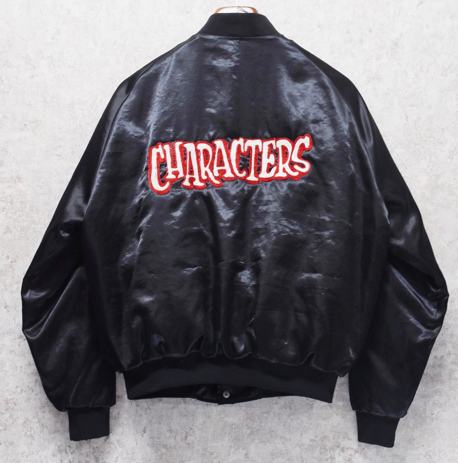 90's【USA製】【ビンテージ】ヒルトン【HILTON】【黒】CHARACTERS【中綿入り】【サテンブルゾン】L