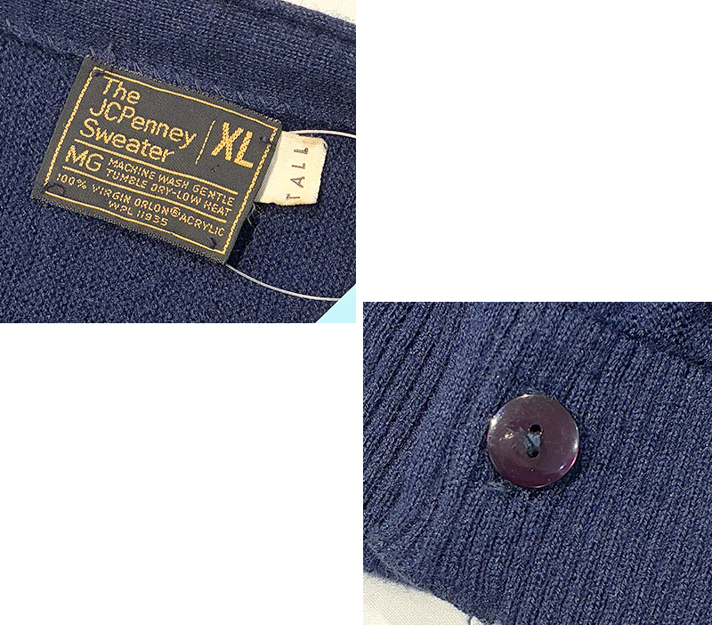 80's【ビンテージ】【JCPenney】【JCペニー】【紺】【アクリルカーディガン】【サイズXL-TALL】
