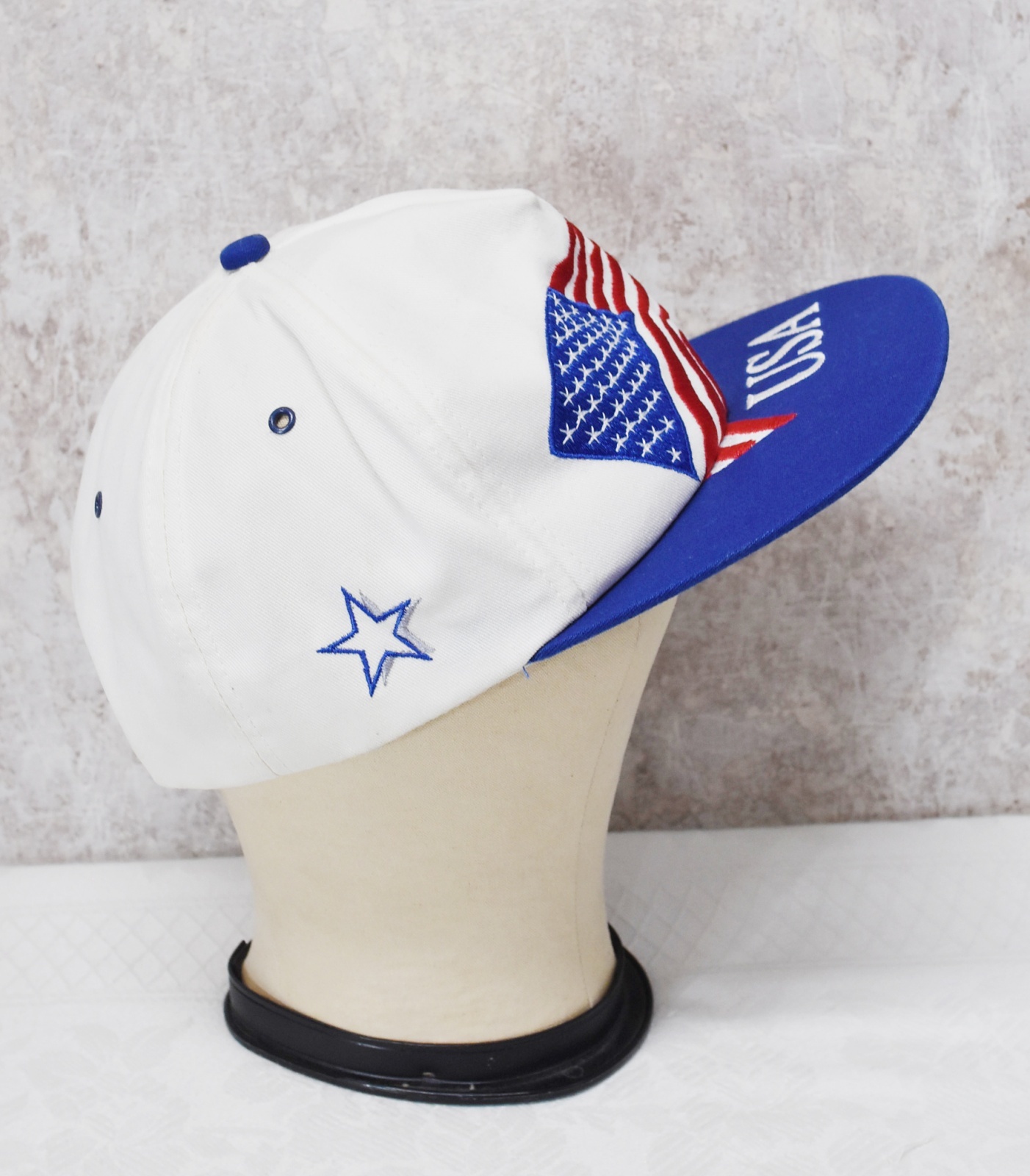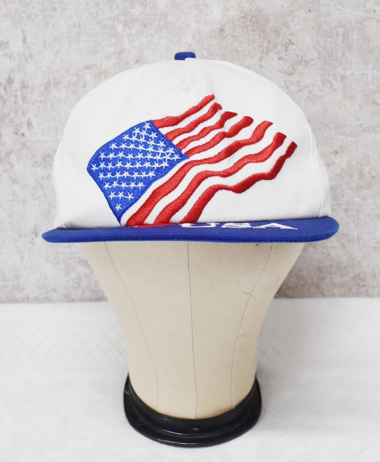 【USA製】K-Products【ビンテージ】【アメリカ国旗】刺繍【白×青】BBキャップ【ベースボールキャップ】サイズフリー