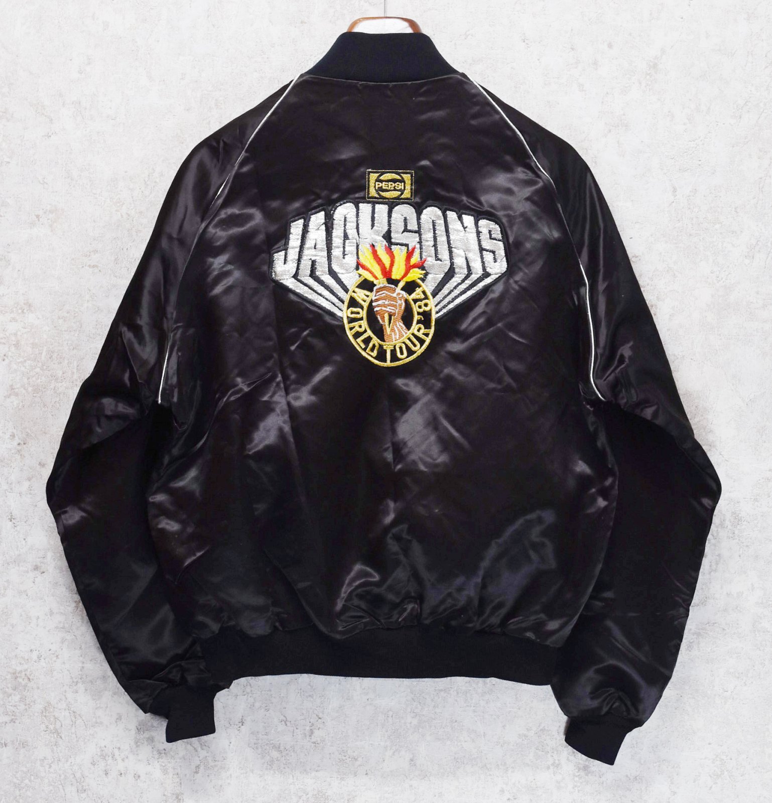 デッドストック【80's】【ビンテージ】【UPSTREAM】【マイケルジャクソン】黒【サテンスタジャン】サテンブルゾン【M程度】