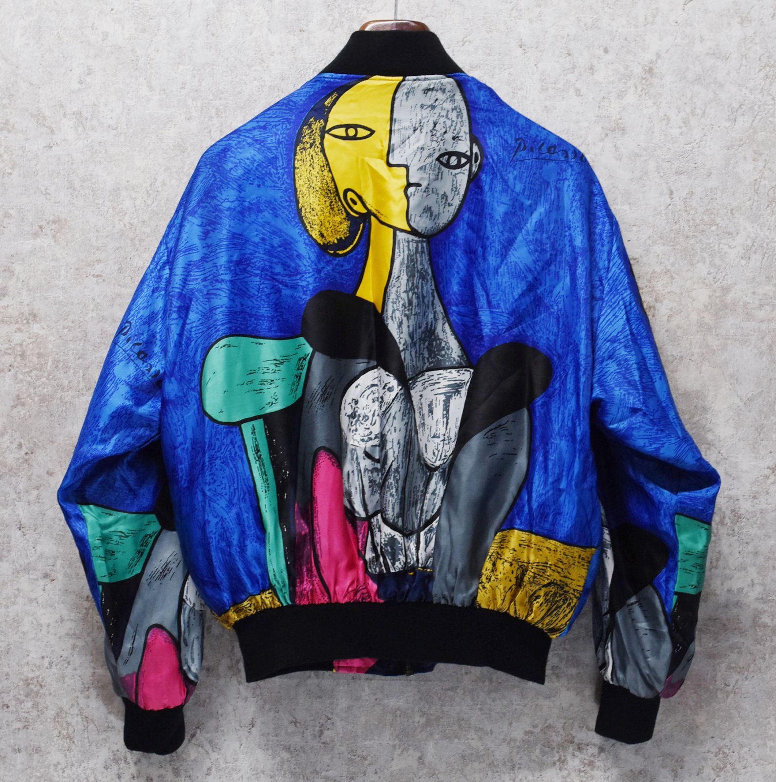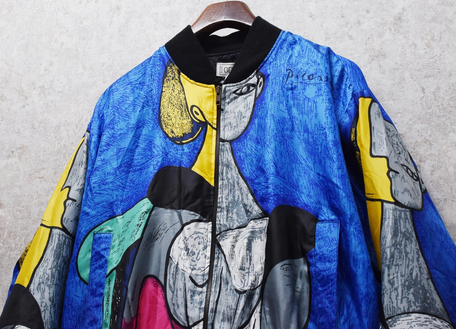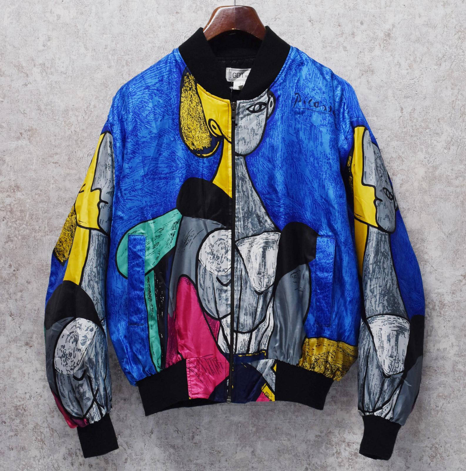 ビンテージ【GDT TOO】【ピカソ】黄色い背景の女 総柄【ポリブルゾン】ジップアップブルゾン ワンサイズ