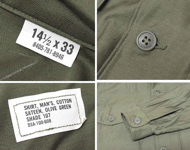 デッドストック【60's】【U.S.ARMY】【米軍実物】【ビンテージ】平ボタン【ユーティリティシャツ】【14 1/2×33】