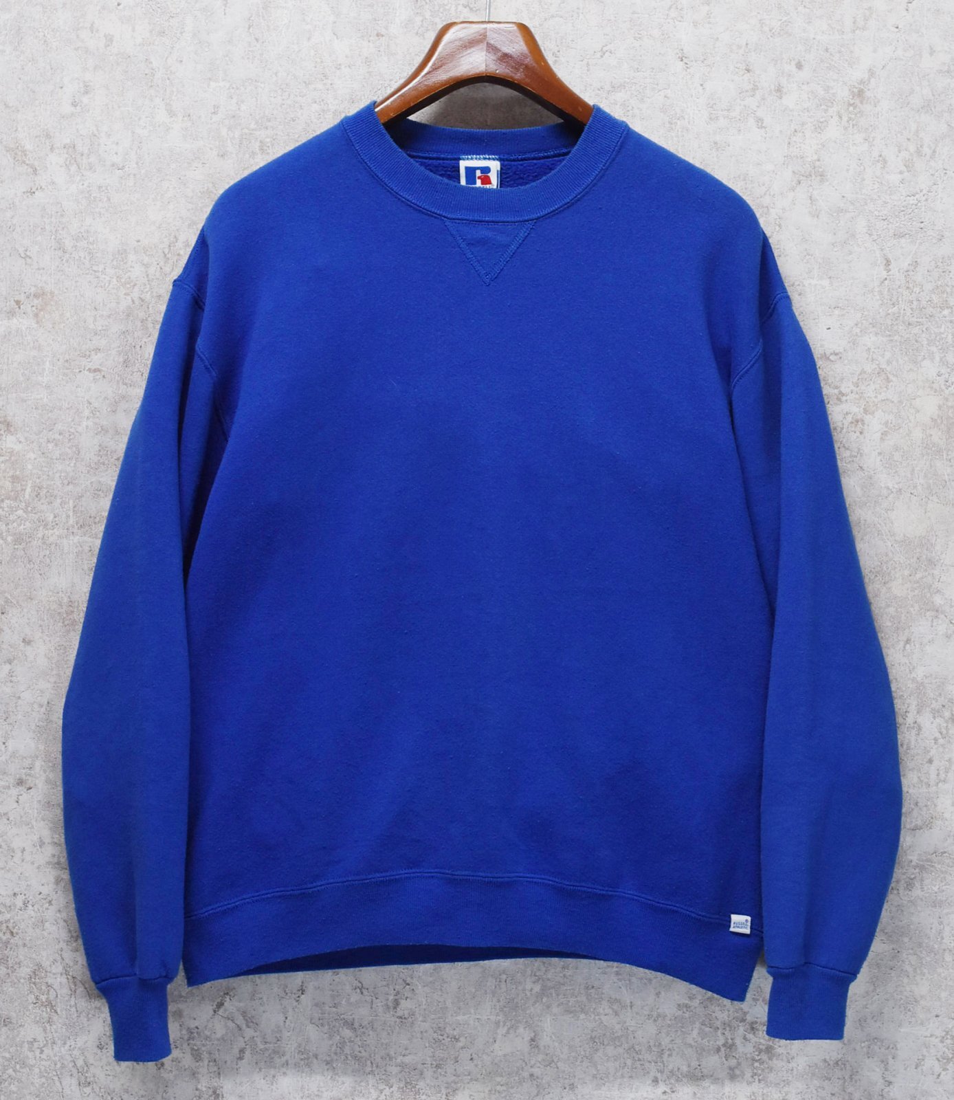 90's【USA製】【RUSSELL】ラッセル 【ビンテージ】青【無地】【クルーネック】前V スウェット【サイズXL】