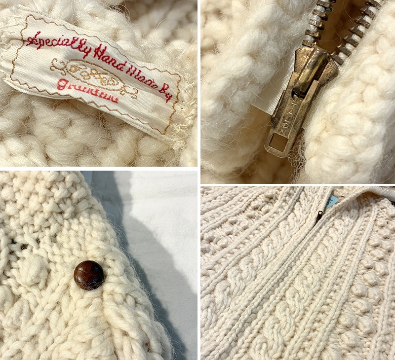 ビンテージ【Specially Made By Grandma】生成り【ジップアップウールパーカー】【サイズM程度】