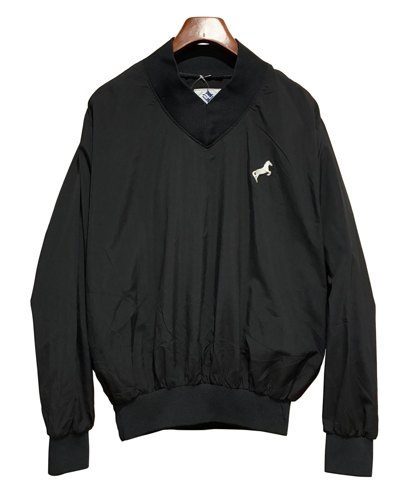 USA製【ビンテージ】WINDLESS【左胸白馬刺繍】黒【Vネックナイロンプルオーバー】【サイズL程度】