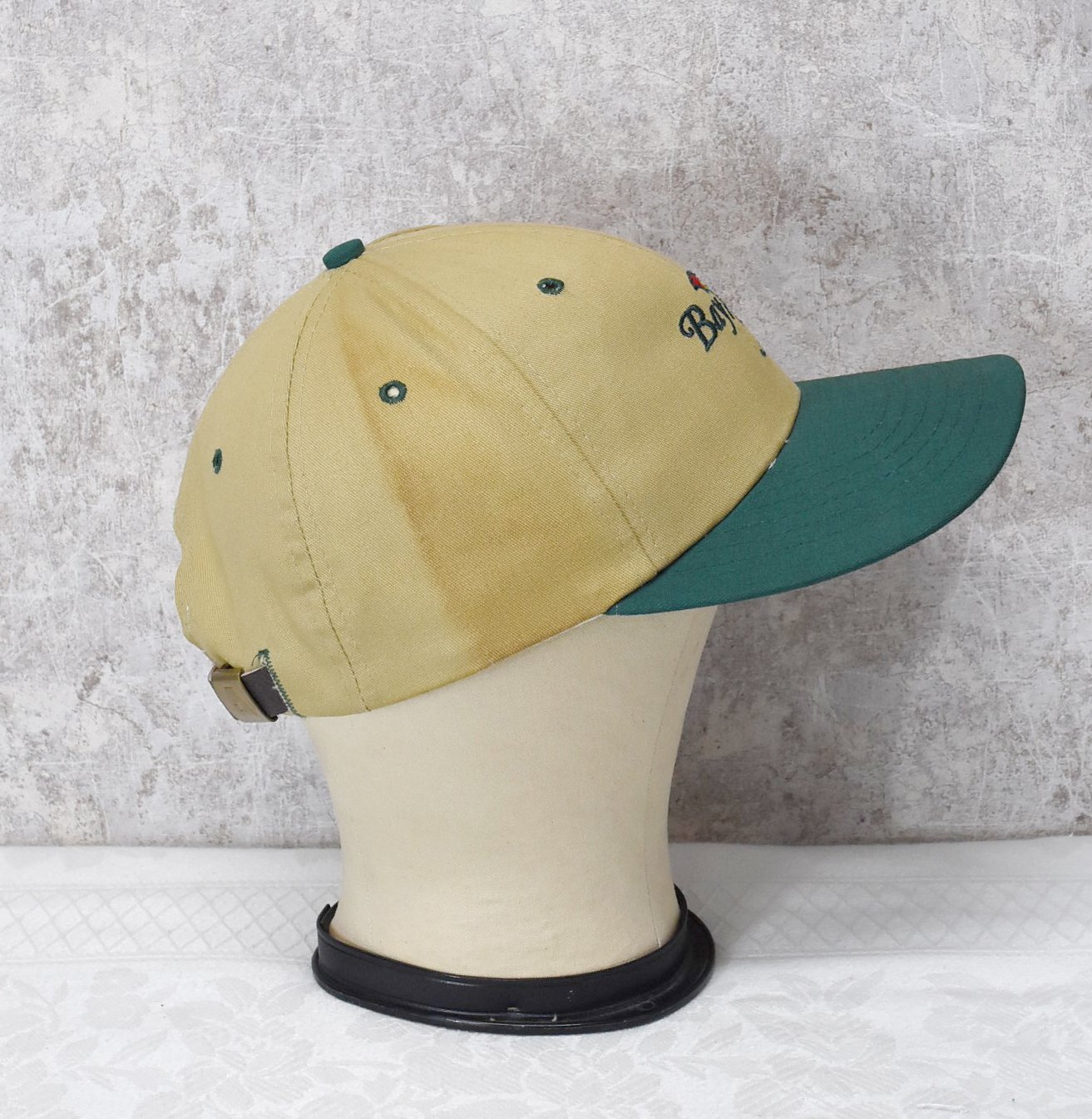 ほぼ未使用!! 90's~【USA製】【BYATEXAS】【ビンテージ】【Bay Hill】刺繍【ベージュ×ツバ緑】傘【BBキャップ】【ベースボールキャップ】サイズフリー