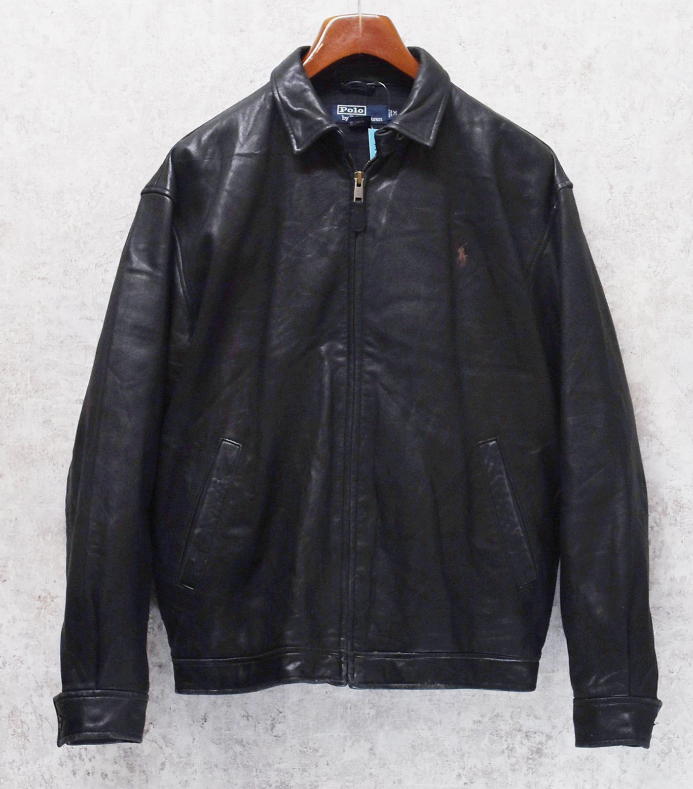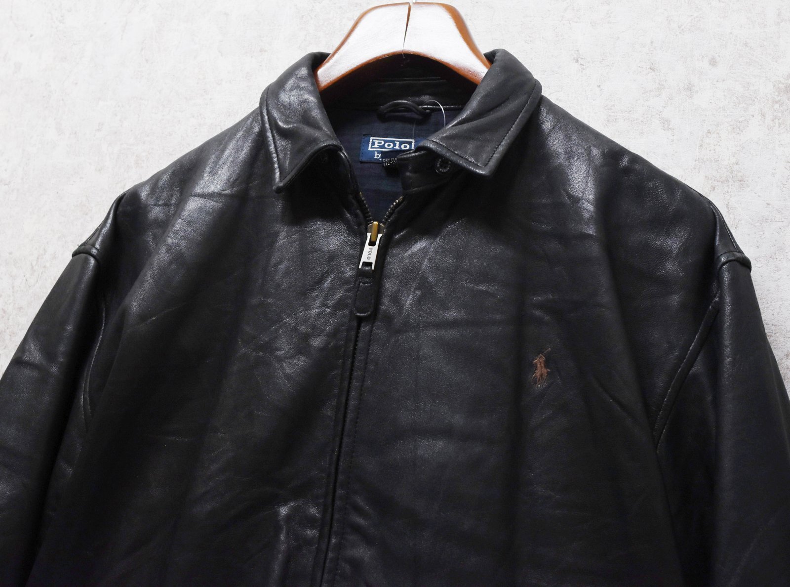 ビンテージ【ラルフローレン】POLO RALPH LAUREN【黒x裏地ブラックウォッチ】ラムレザー【ジップアップレザーブルゾン】【サイズM】
