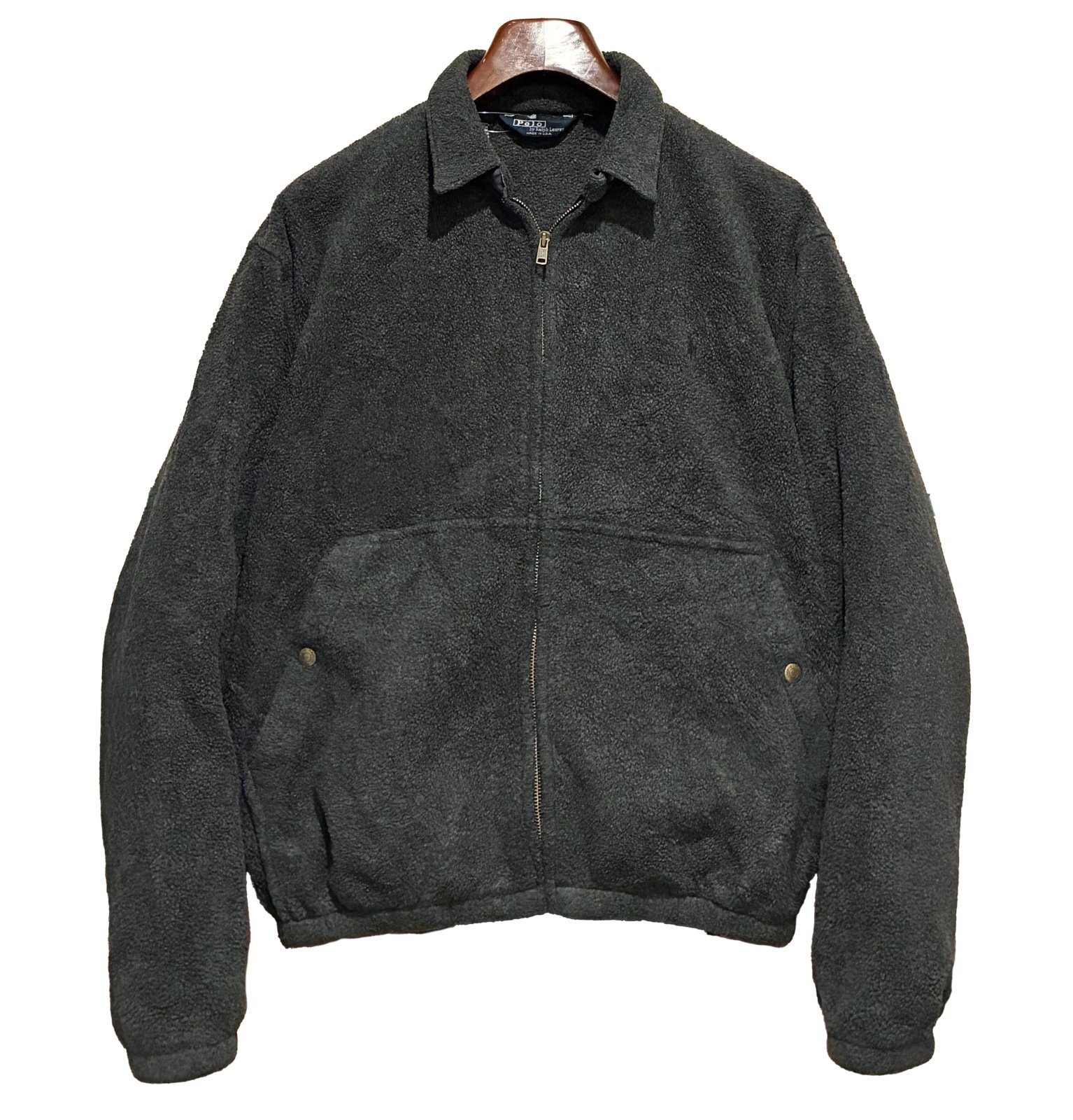 90's USA製【ラルフローレン】【POLO RALPH LAUREN】ビンテージ【チャコール】【フリースジップアップジャケット】ブルゾン【スウィングトップ】【サイズM】