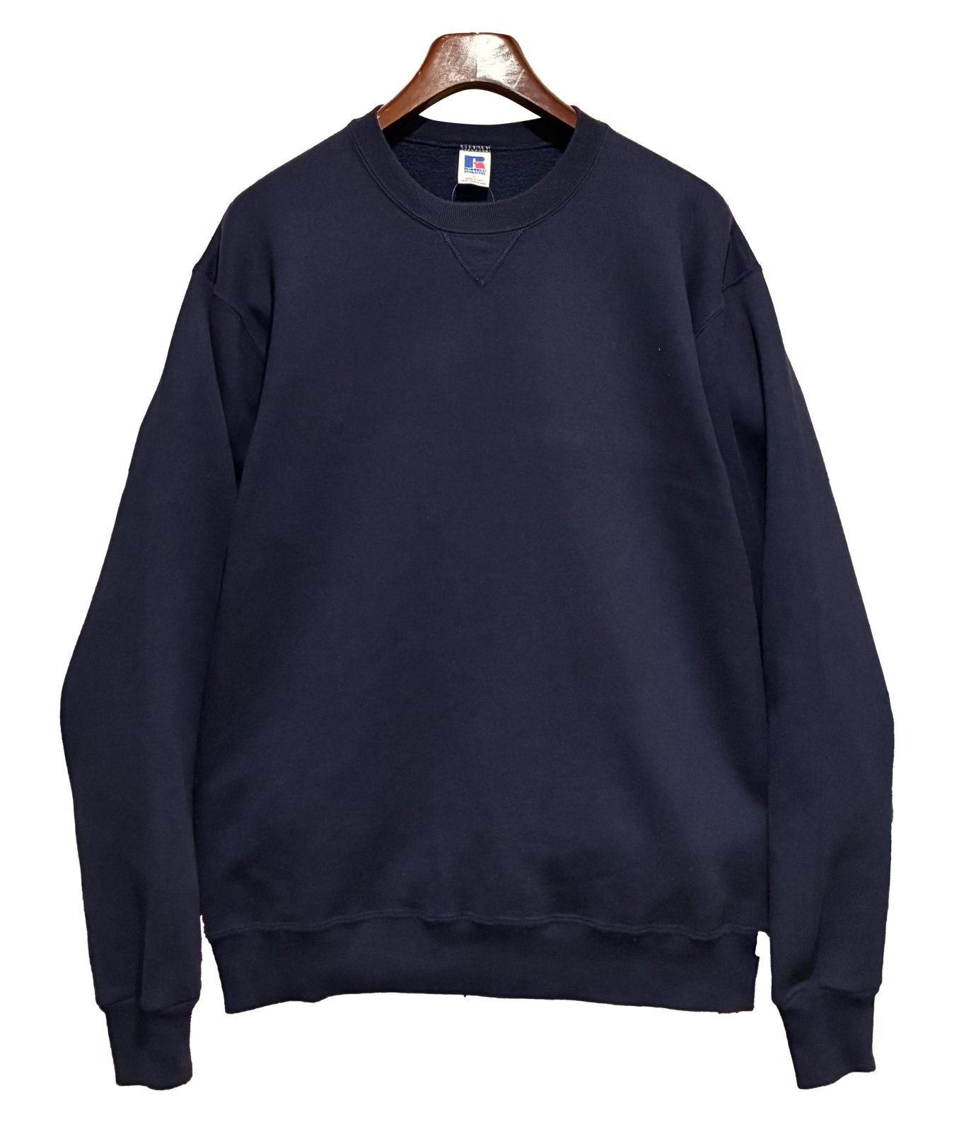 90's【USA製】【RUSSELL】ラッセル 【ビンテージ】紺【無地】【クルーネック】前V スウェット【サイズL】