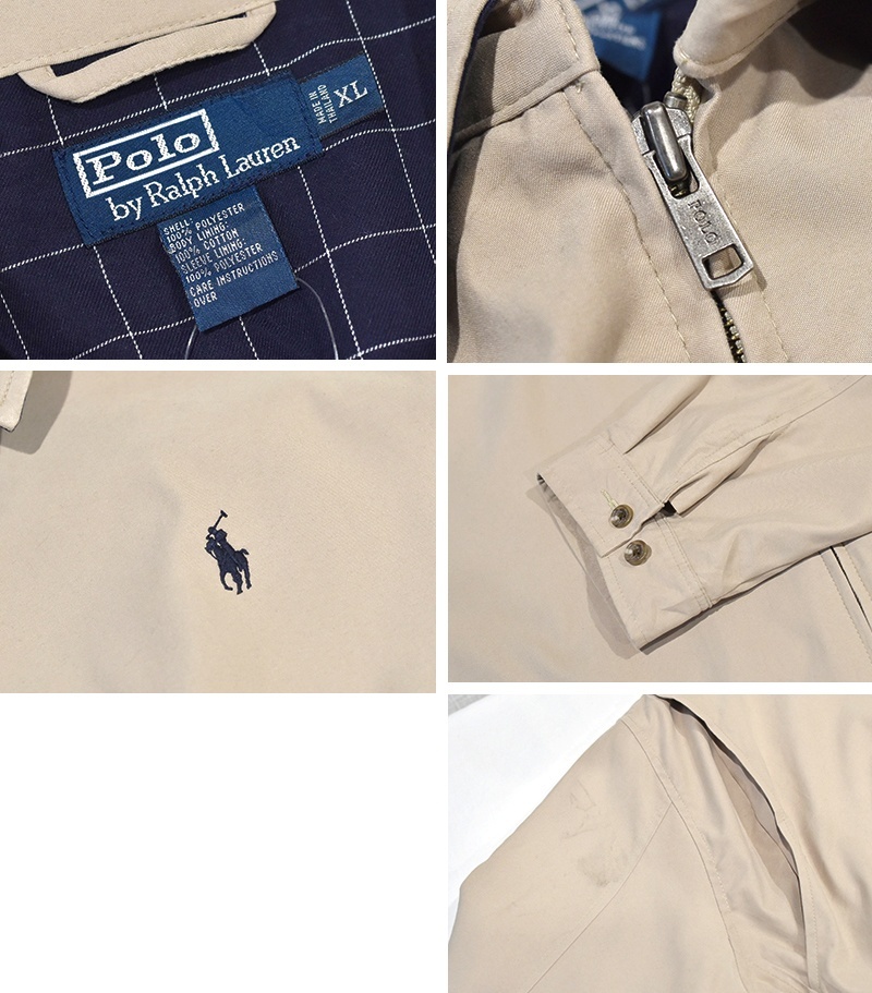 【ビンテージ】【ラルフローレン】【POLO RALPH LAUREN】【ベージュx裏地紺格子柄】ジップアップ【ブルゾン】スウィングトップ【サイズXL】