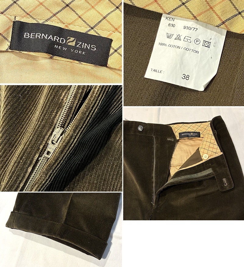 ビンテージ フランス製?【BERNARD ZINS】ベルナールザンス【ブラウン】2タック【コーデュロイパンツ】コーデュロイスラックス【38】