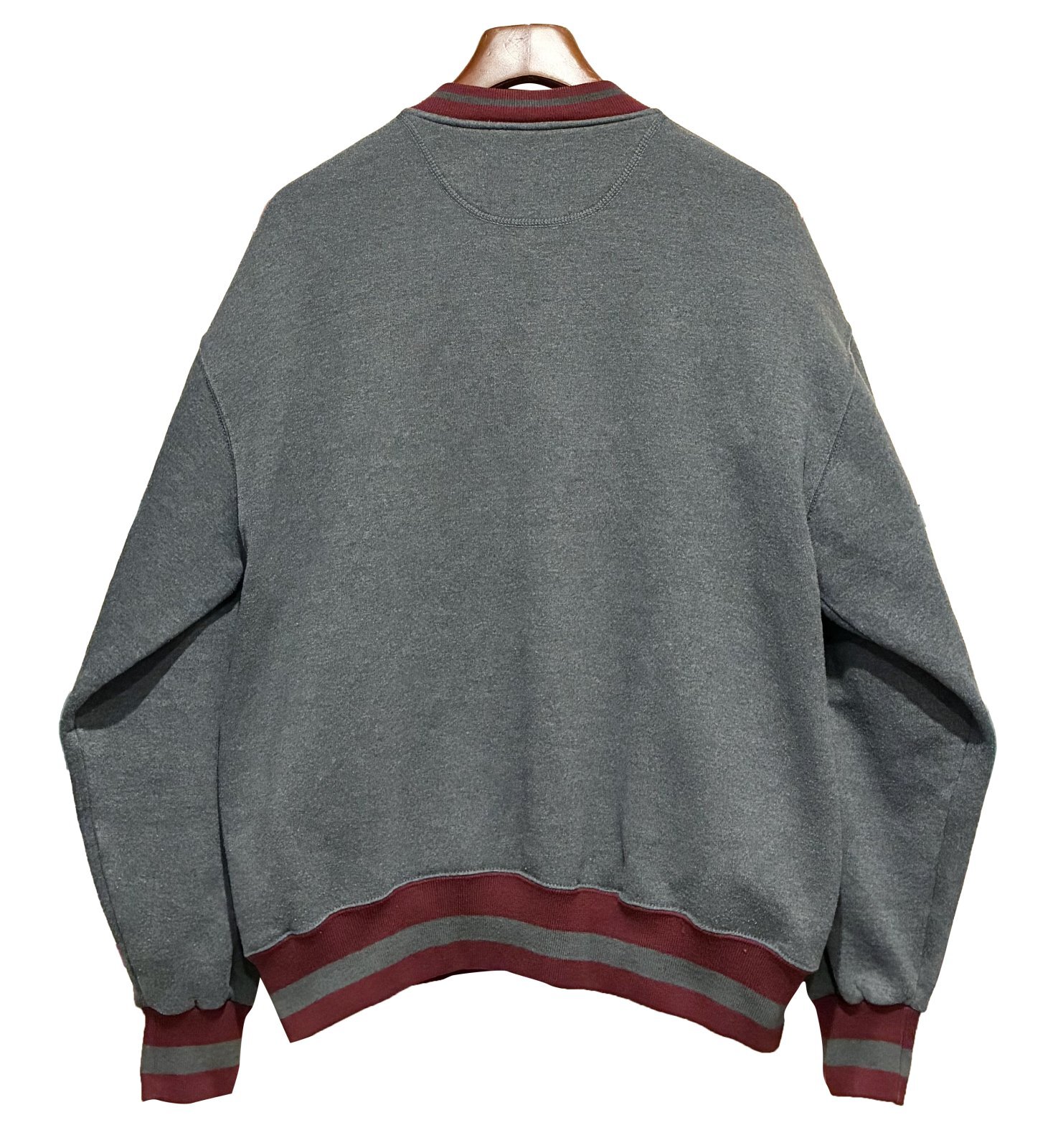 90's【USA製】【RUSSELL】ラッセル 【ビンテージ】チャコールxリブエンジライン 【ヘンリーネックスウェット】【サイズL】