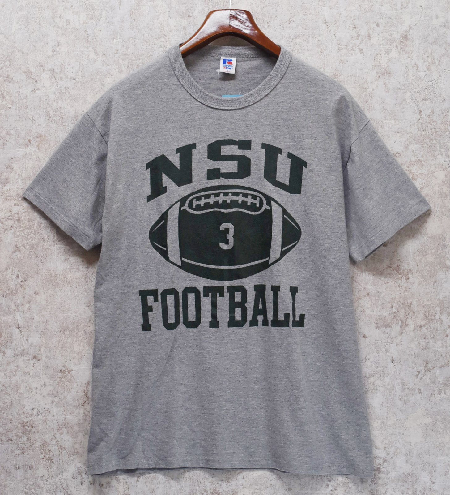 90’s~【USA製】【Russell】【ラッセル】【グレー】【NSU FOOTBAL】フットボール【Tシャツ】【サイズL】