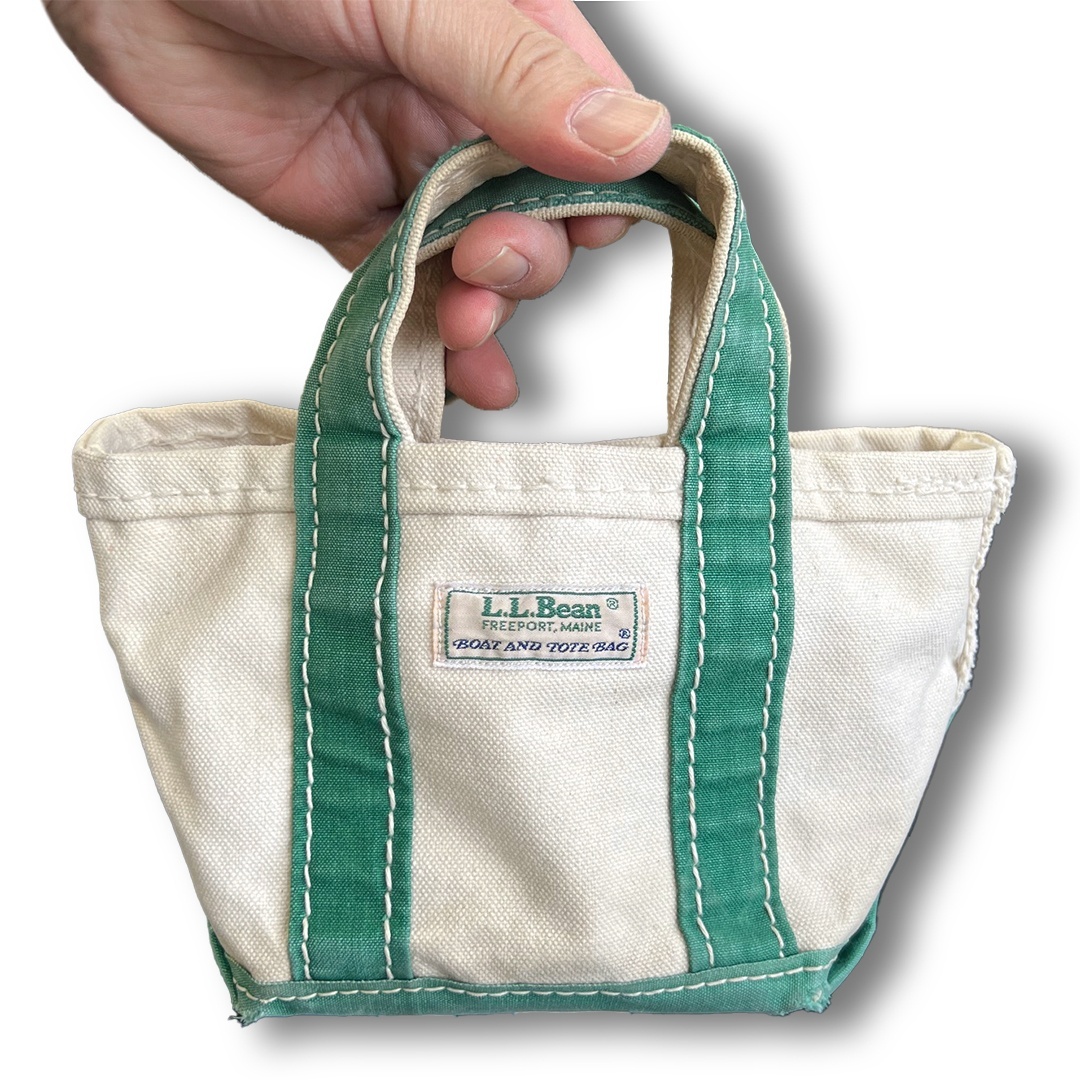 80's【ビンテージ】【L.L.bean】【エルエルビーン】 白x緑【キャンバス】【ミニトートバッグ】【ビーントート】