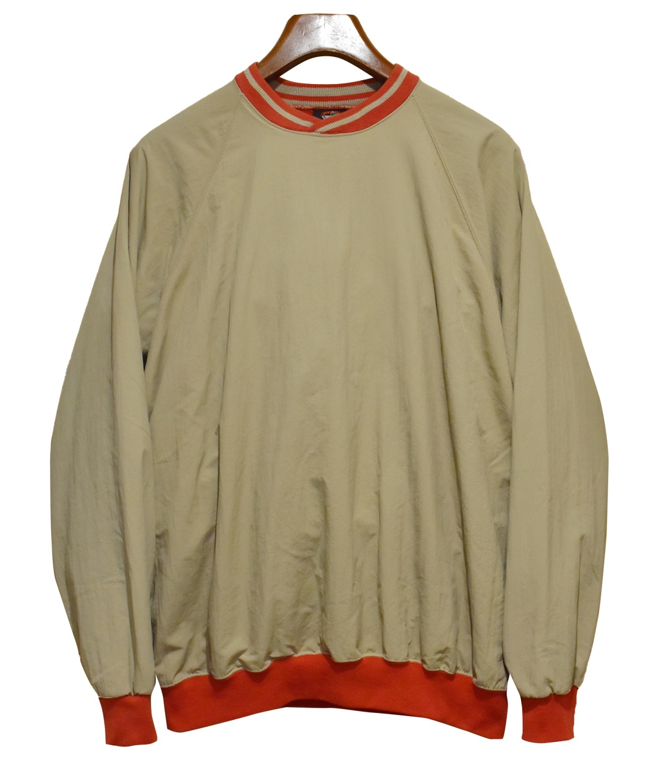 90's【USA製】ビンテージ【PM SPORTS】【ベージュx赤リブ】【クロスネック】プルオーバー【裏地フリース】【サイズL】