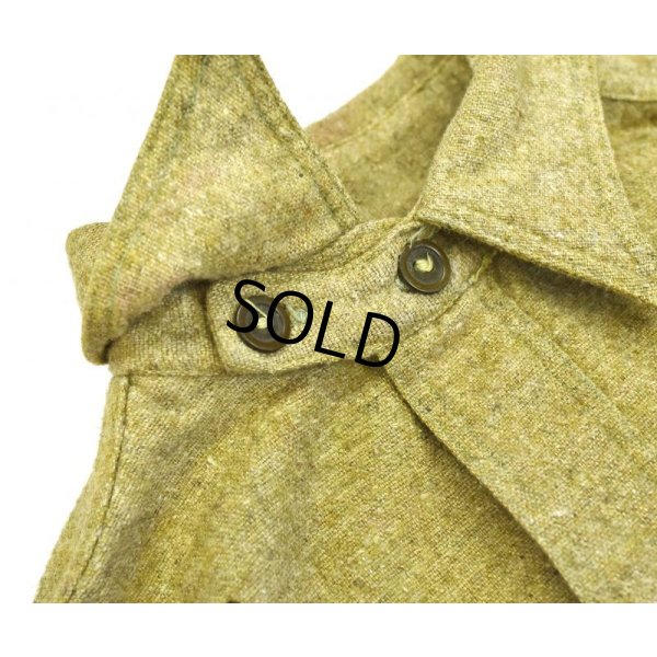 ◆商品説明◇ 30's頃のチンスト付きのウールシャツ。 実寸を参考に、是非よろしくお願いします。 ◆サイズ◇ サイズ表記:不明 素材・材質:ウール 実寸(平置きで) 肩幅(肩〜肩) :約45cm 身幅(脇下〜脇下):約56cm 袖丈(肩〜袖先) :約58cm 着丈(襟下〜裾) :約74cm ◆コンディション◇ フロント部分と後ろ襟に ウールが色あせて変色している箇所があります。 カフスのボタンが欠損していたため、 付け替えてあります。 その他、特筆すべき大きなダメージはありません。 【30's】【ビンテージ】【チンストラップ】【ウールシャツ】 [AI2305-60] Tweet 返品特約に関する重要事項 お問い合わせ お気に入り登録