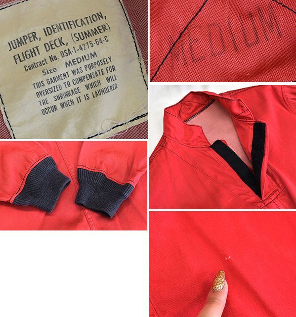 ◆商品説明◇ 60年代頃の米海軍実支給品、 フライトデッキサマージャケットです。 実寸を参考に是非宜しくお願いします。 ◆サイズ◇ サイズ表記:M 素材・材質:コットン、ポリエステル 実寸(平置きで) 肩幅(肩〜肩) :約45cm 身幅(脇下〜脇下):約56cm 袖丈(肩〜袖先) :約64cm 着丈(襟下〜裾) :約76cm ◆コンディション◇ 全体的な色あせや、細かい汚れや傷など 中古感があります。 その他、特筆すべき大きなダメージはありません。 60's【ビンテージ】【U.S.NAVY】【赤】ミリタリー フライトデッキサマージャケット JUMPER IDENTIFICATION FLIGHT DECK【サイズM】 [BC3105-20] Tweet 返品特約に関する重要事項 お問い合わせ お気に入り登録