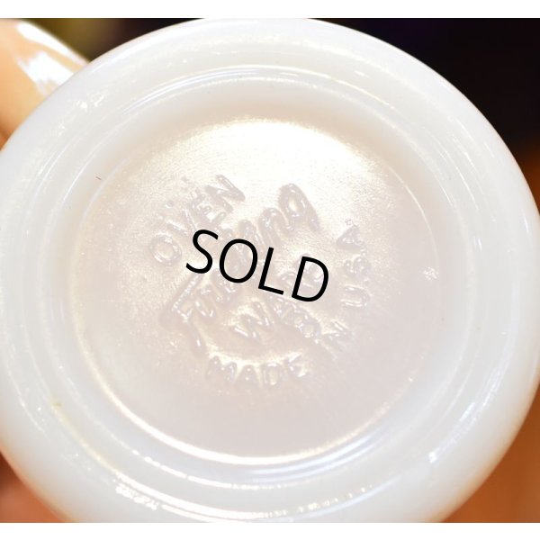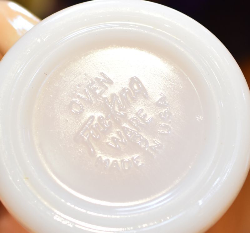 ◆商品説明◇ ファイヤーキングの ピーチラスターのDハンドルです。 ◆サイズ◇ サイズ表記: 素材・材質:ミルクガラス 実寸(平置きで) 幅(ハンドル含む):約10.5cm 高さ :約8.5cm ◆コンディション◇ 細かい傷などの中古感がありますが アンティークカップとして概ね良好です。 ミルクガラスの特性である若干の練りムラ等 製造時からのものにつきましては、 多少どの商品にも見られますので、 ご了承願います。 アンティークになりますので、 骨董品にご理解の無い方は使用できません。 Fire King【ファイヤーキング】【ピーチラスター】【Dハンドル】【マグカップ】 [BF0501-3] Tweet 返品特約に関する重要事項 お問い合わせ お気に入り登録