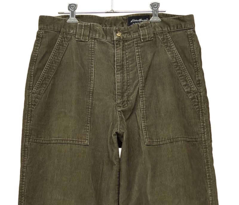 ブラウンのコーデュロイパンツ。
